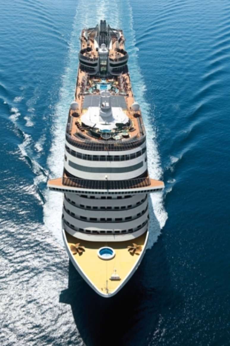 E a influência italiana não para por aí. Uma das cinco piscinas do transatlântico tem um teto retrátil, com os tons de água realçados por mosaicos feitos por artesãos da região de Sorrento, na costa amalfitana (Itália). Mas se o hóspede preferir tomar banho com vista do mar ao fundo, pode ir para o espaço Lido Catalano, uma piscina na popa do navio.