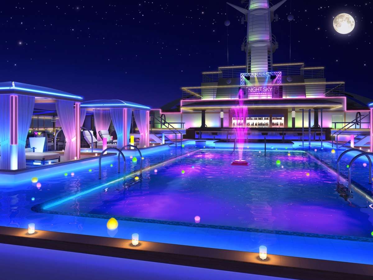 Por uma noite em cada roteiro pelo Caribe a área da piscina será convertida no Night Sky Lounge, um espaço inspirado nos nightclubs do sul de Miami, nos Estados Unidos. A atmosfera será completada com a iluminação diferenciada na piscina e nos móveis ao seu redor, drinques brilhantes e DJs. Serão servidos coquetéis sofisticados feitos por bartenders malabaristas, até mesmo nas duas jacuzzis. Será possível reservar cabanas com serviço de bebidas.