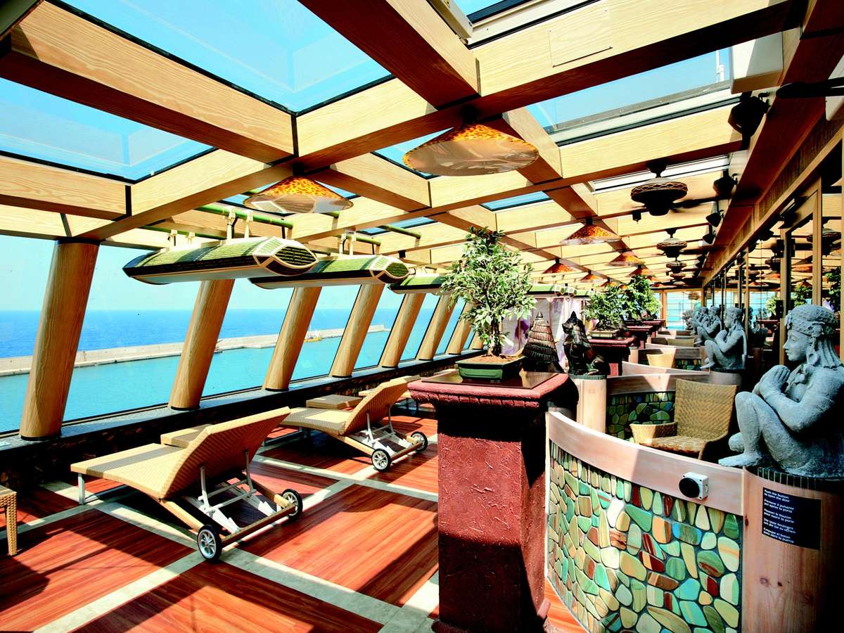 Em algumas embarcações são oferecidas outras mordomias. No Costa Fortuna, que navega pelo Brasil nesta temporada, há piscinas de hidromassagem e os colchonetes para aproveitar o sol. Nos navios Costa Fascinosa, Favolosa e Serena, também na costa brasileira, o espaço Samsara Spa possui solarium de raios UVA com grandes vidraças abertas com vista para o mar, além de termas, banho turco, sauna, piscinas e tratamentos estéticos como a talassoterapia, feito com água do mar.