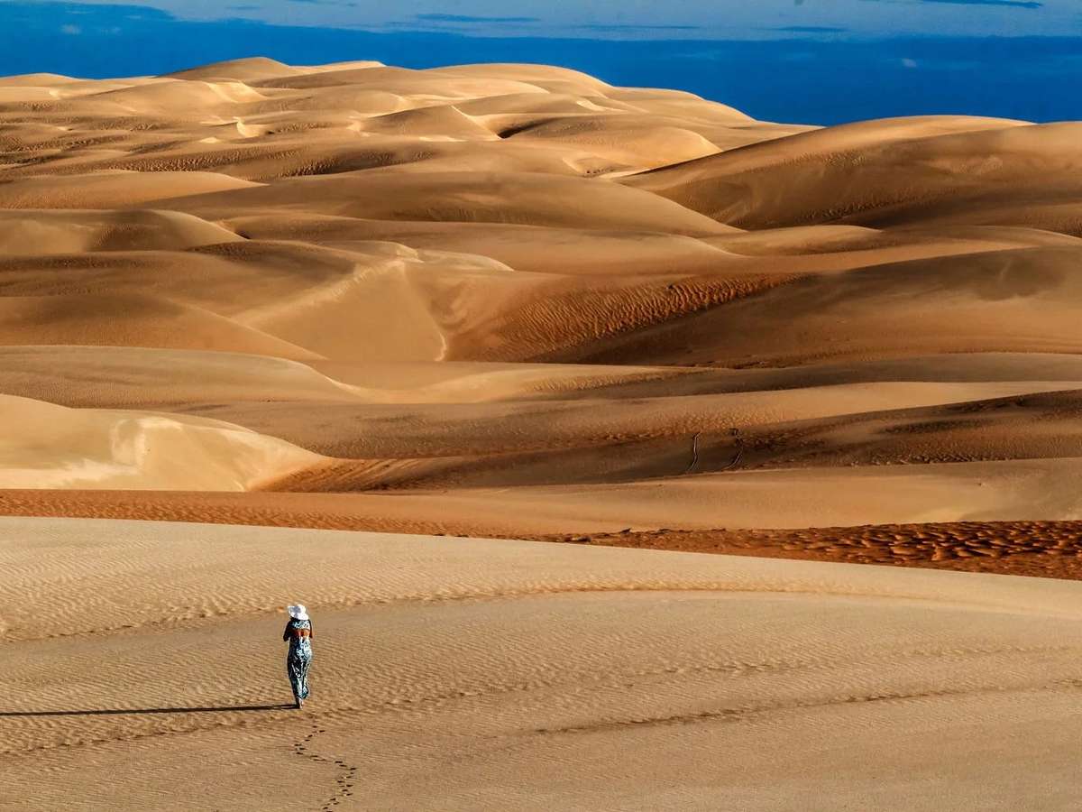 Com 10 km² de extensão, essa sequência de montanhas coloridas é formada pelos sedimentos de falésias vizinhas, trazidos pelos ventos constantes.
