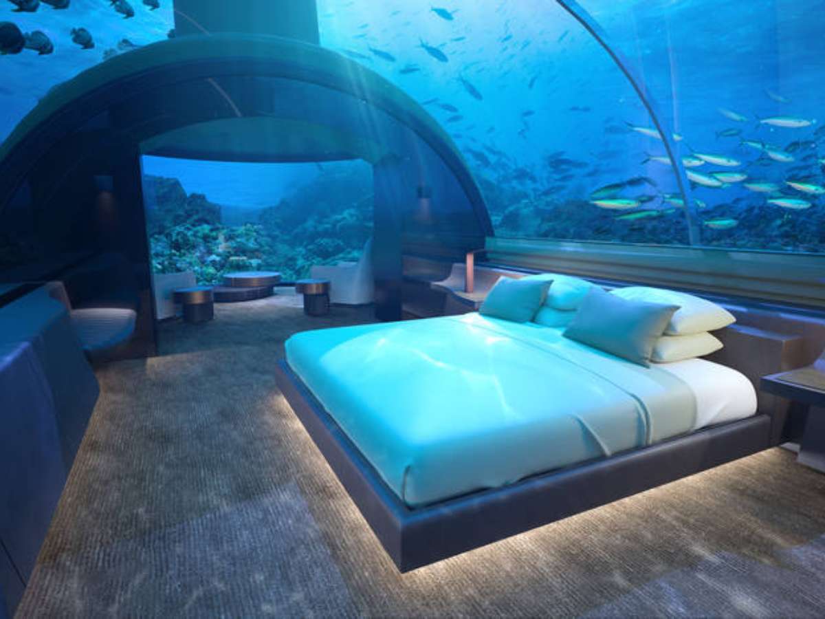 Depois do restaurante submerso Ithaa, que está em seu 13º ano de funcionamento, o hotel Conrad Maldives Rangali Island inaugura em novembro uma acomodação no fundo do mar. A "vila" com capacidade para até nove hóspedes tem quarto, banheiro e sala de estar a uma profundidade de 5 metros abaixo do nível do mar.