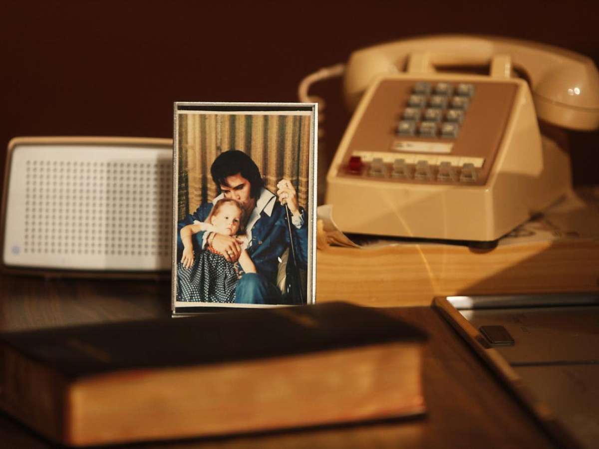 A filha do cantor, Lisa Marie Presley posou ao lado de seu berço e um poster dela ainda bebê nos braços do pai
