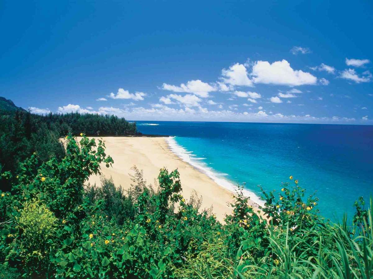 Ke’e Beach, Kauai: com um impactante visual sobre as falésias da costa de Na Pali, no litoral de Kauai, a praia de Ke’e Beach é uma das mais visitadas da ilha. Situada no começo da famosa trilha de Kalalay, tem uma lagoa de águas calmas ideais para pescar e mergulhar. No entanto, é melhor manter-se afastado da abertura da lagoa sobre o Oceano, com fortes correntezas.