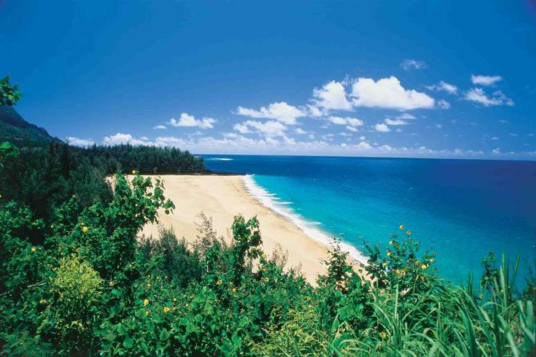 Lumahai Beach, Kauai: praia do litoral norte da ilha de Kauai, Lumahai Beach encontra-se ao lado do Parque Estadual de Ha’ena, e encanta os visitantes pela beleza de suas paisagens naturais. Porém, é melhor curtir a praia da areia: ondas perigosas e fortes correntezas fazem de suas águas nada recomendáveis para mergulhos e surfe.