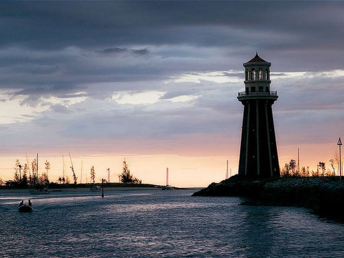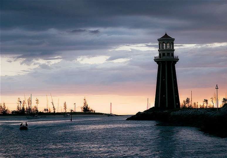 Beachy Head Lighthouse, Inglaterra: perigosas para a navegação, as imponentes falésias de Beachy Head, no sudeste da Inglaterra, deviam ser sinalizadas por um farol. Primeiro, o farol de Belle Tout foi construído no topo, mas a neblina e as nuvens baixas impediam os barcos de ver sua luz. Foi então, em 1902, que o farol de Beachy Head foi instalado mar adentro ao pé do penhasco, com uma altura de 43 metros