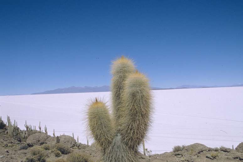 O salar de Uyuni é o maior deserto de sal do mundo, com uma superfície que se estende sobre 12.500 quilômetros quadrados. Vestígio de um antigo lago de água salgada no sul da Bolívia, o salar tem paisagens únicas, com um solo branco que parece não acabar nunca e que, durante a época de chuvas, parece refletir o céu.