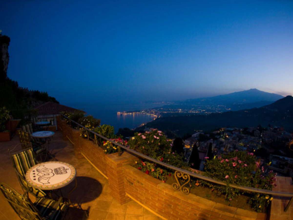 Situado no centro histórico do vilarejo de Taormina, na ilha italiana da Sicília, o Hotel Villa Angela tem um lindo terraço panorâmico com vistas que alcançam as águas cristalinas do Mar Jônico e o vulcão Etna. Jim Kerr, vocalista da banda Simple Minds, é o dono deste hotel luxuoso e aconchegante, ideal para viver férias românticas inesquecíveis.