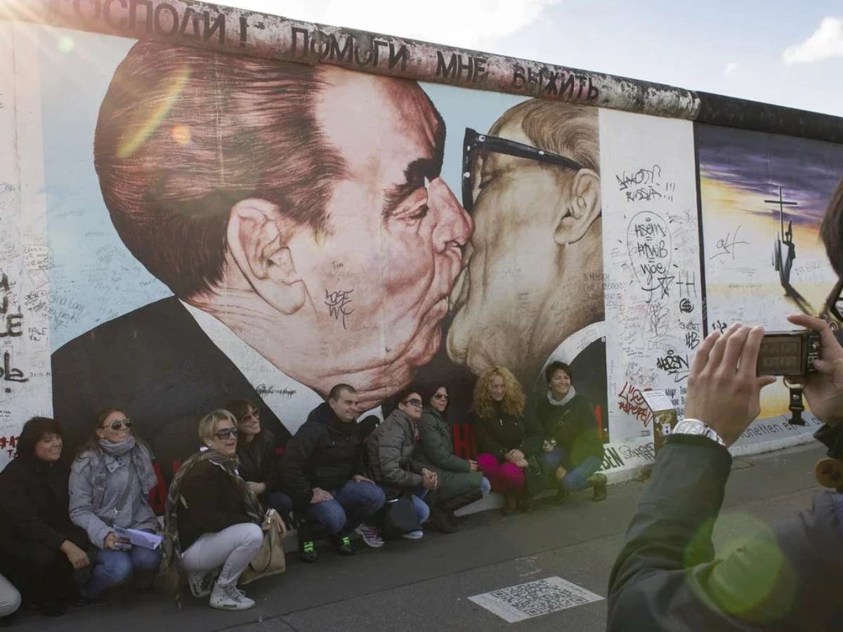 Em mais de uma centena no que era o lado leste do muro, os artistas retrataram as mudanças políticas de 1989/90, cujos destaques são as populares "Beijo Fraternal", de Dmitri Vrubel, e "Trabant rompendo o muro", de Birgit Kinders.