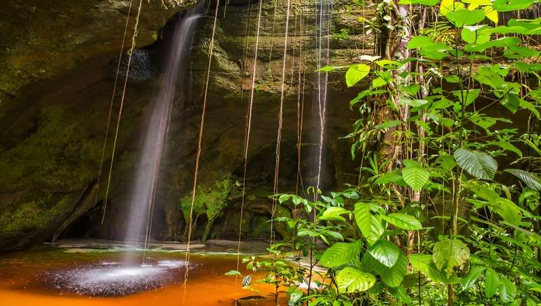 A Amazônia não tem só hotel de selva, onça-pintada e árvores gigantescas. Tem também formações geológicas monumentais como cânions, arcos de pedras, dolinas, cavernas e grutas. E basta um curso d'água topar com uma fenda na rocha para que surjam cachoeiras impressionantes. Foi esse o cenário com o qual topei na região de Presidente Figueiredo, município que fica a 107 quilômetros ao norte de Manaus e onde vivem 37 mil habitantes. São mais de 140 quedas d'água catalogadas e abertas à visitação, com variados volumes de água, alturas e cenários.