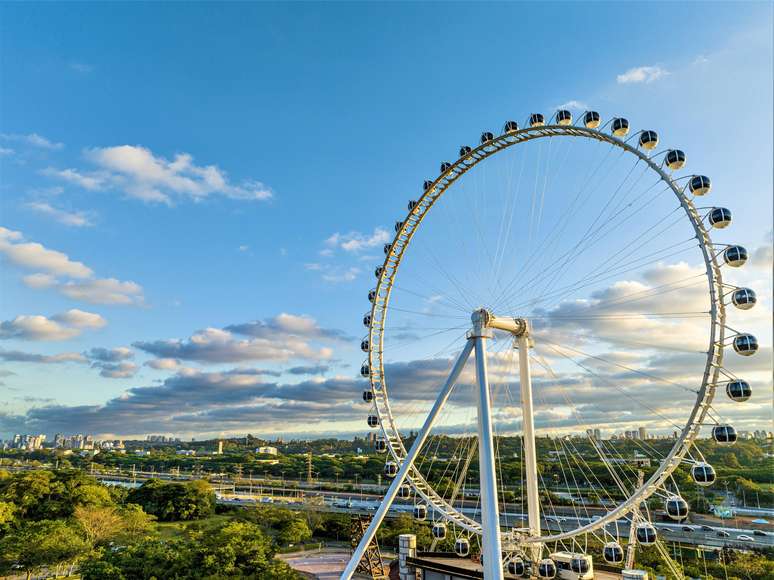 A "Roda Rico São Paulo" tem 91 metros de altura e faz uma volta completa em 30 minutos