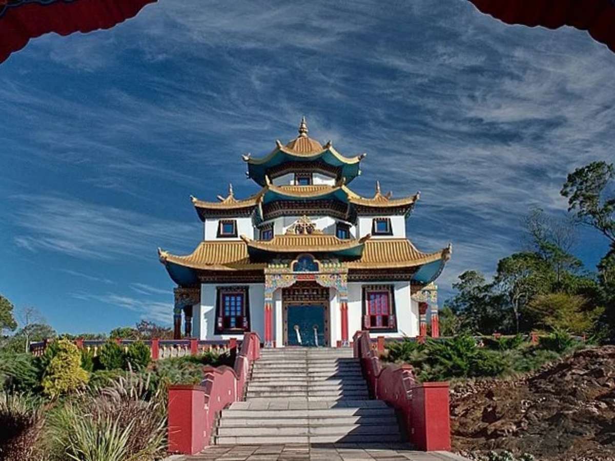 Em meio a jardim de estátuas, lamparinas e bandeiras de orações que se agitam ao vento, fica também o emocionante Terra Pura de Guru Rinpoche, uma construção de telhados amarelos, erguido como réplica da moradia de Padmasambava, cujo interior guarda delicadas pinturas e estátuas que representam diferentes manifestações dessa deidade, conhecida também como Guru Rinpoche, responsável por levar o budismo vajrayana para o Tibet.