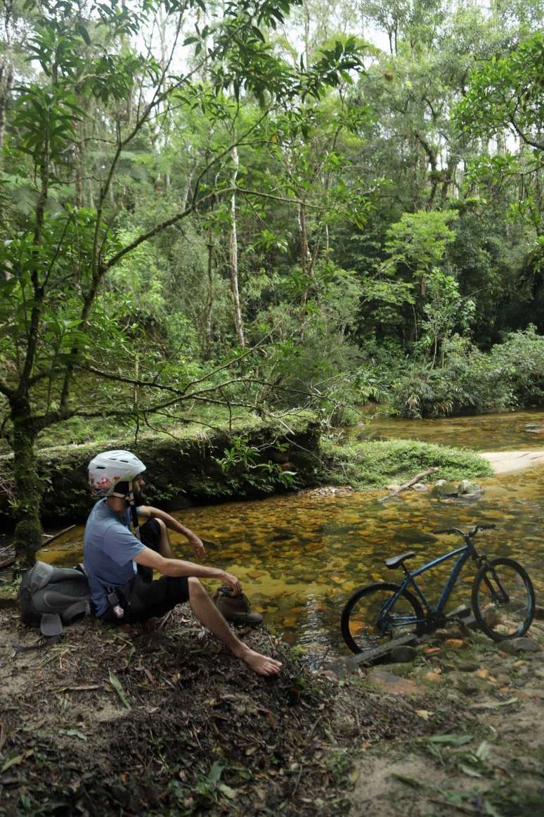Seja a pé ou de bicicleta, o melhor acontece depois dos cinco primeiros quilômetros de trilha, quando o visitante faz a travessia de um dos trechos do Itatinga, rio que nasce nessa área de 7 mil hectares com 530 nascentes.