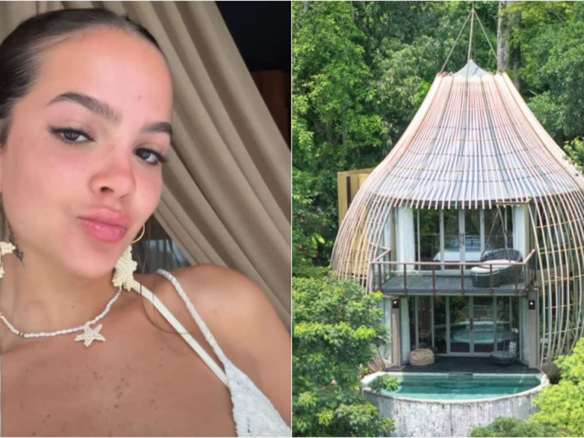 Mel e Luan estão hospedados na "Casa na Árvore" de dois andares com cama king size, cama de solteiro, piscina, vista para a floresta tropical e o resort, incluindo um banheiro espaçoso com chuveiro externo e uma banheira independente com diária, nessa época do ano, que custa pouco mais de R$ 5 mil. A suíte tem 169 m² e espaço de relaxamento ao ar livre no andar superior adjacente ao quarto master.