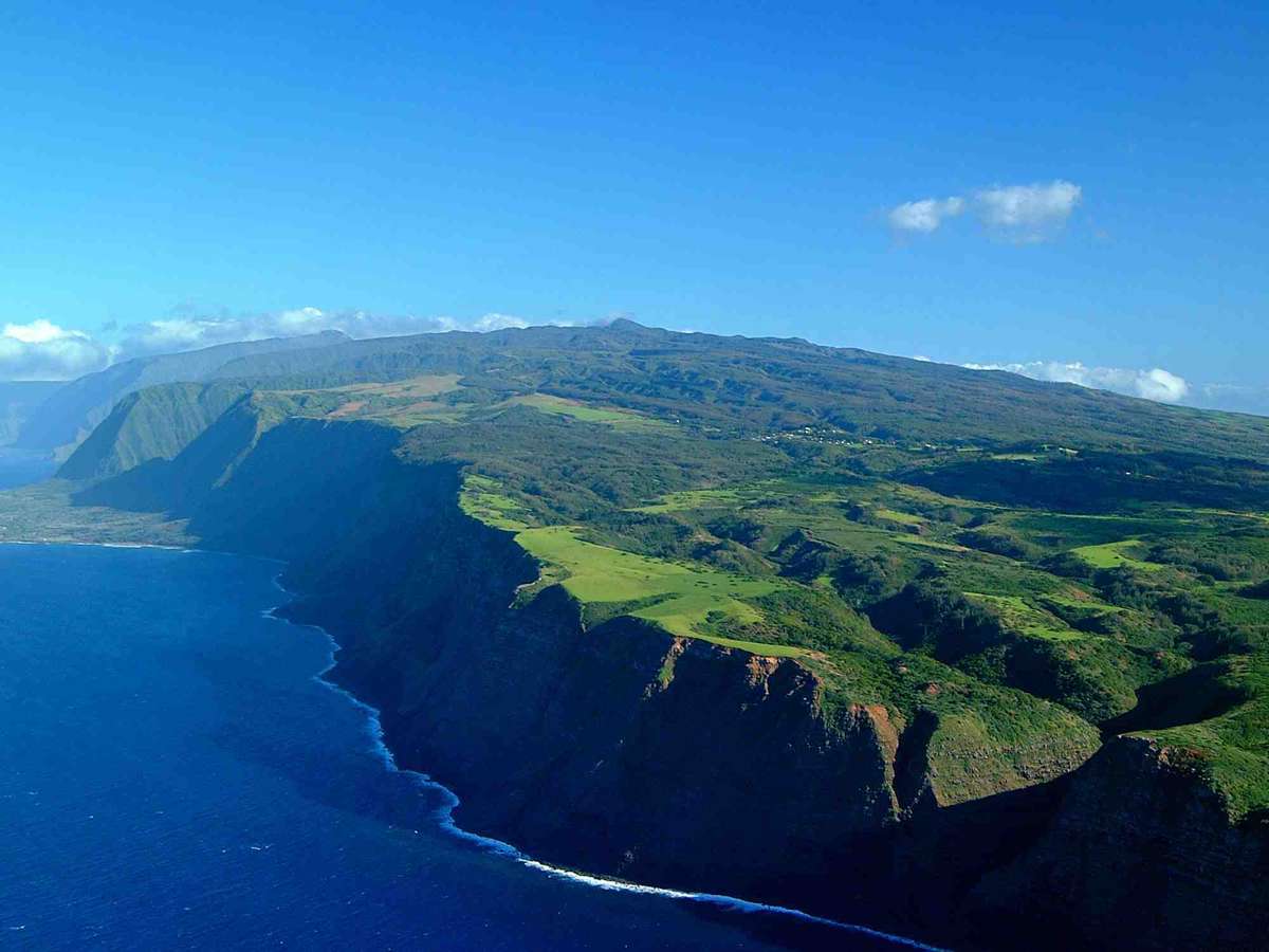 Penhascos de Kalaupapa, Havaí: a uma curta distância do vilarejo homônimo da ilha havaiana de Molokai, os penhascos de Kalaupapa são considerados os maiores penhascos marinhos do mundo, atingindo uma altura de mais de 600 metros. O visual dos penhascos encontrando o Pacífico forma uma das mais belas paisagens todo o Havaí.