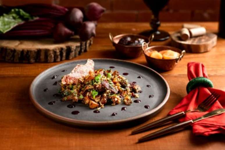 Arroz natalino com tender e redução de beterraba