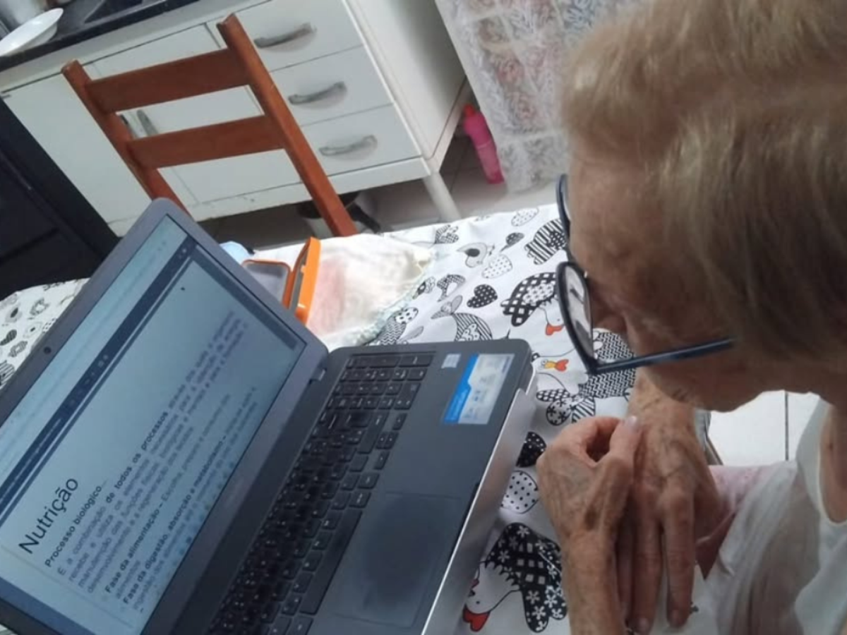 Assim, com a filha a acompanhando durante as aulas e com ajuda dos professores e alunos, a anciã concluiu o fundamental em 2023 e o ensino médio no ano seguinte. Iolanda, por fim, pegou jeito pela coisa e não conseguiu se manter longe dos estudos! Recentemente, em fevereiro, ela ganhou uma bolsa para cursar nutrição na Universidade Guarulhos (UNG).