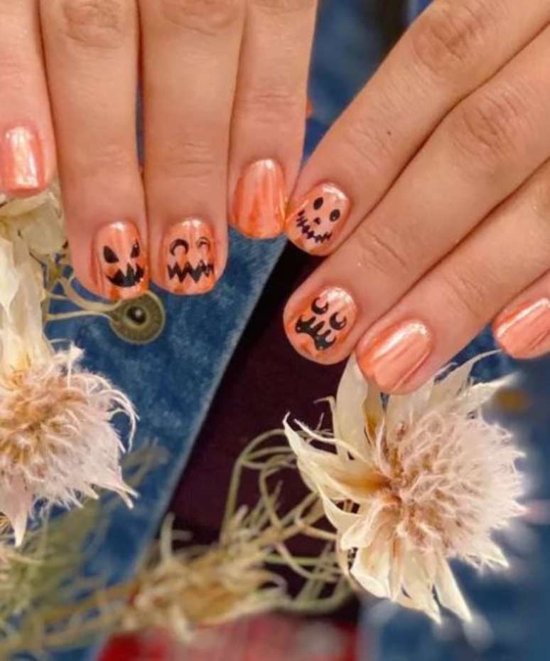 Muito presente na paleta de cores do Halloween, a cor tem conexão com a energia e a força que os mais tradicionais comemoram a data. De acordo com Kelly, pintar as unhas com tons de laranja, além de trazer você para este universo, remete às abóboras decorativas do Halloween.