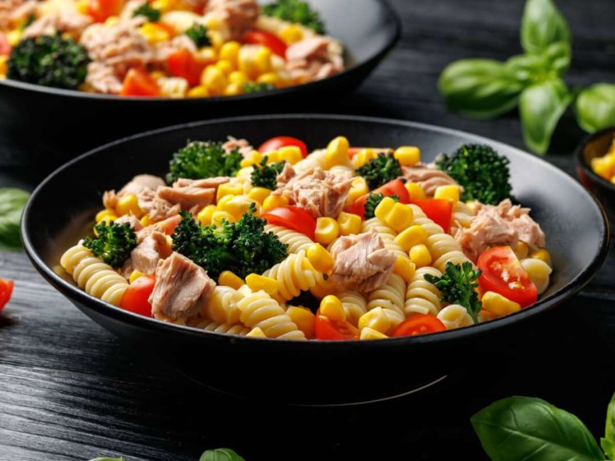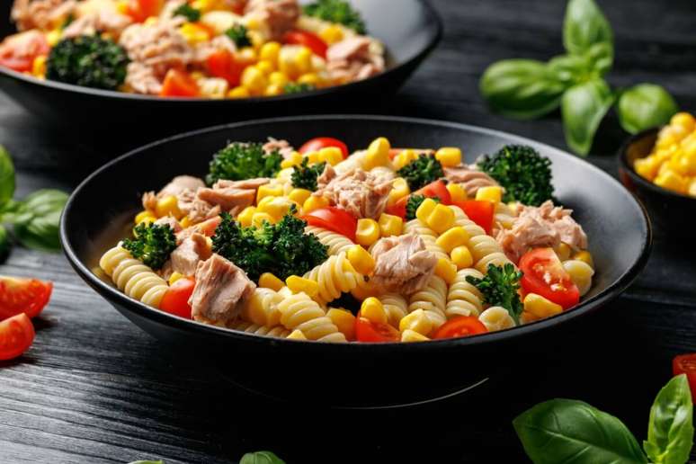 4. Salada de macarrão com atum, brócolis e milho-verde
