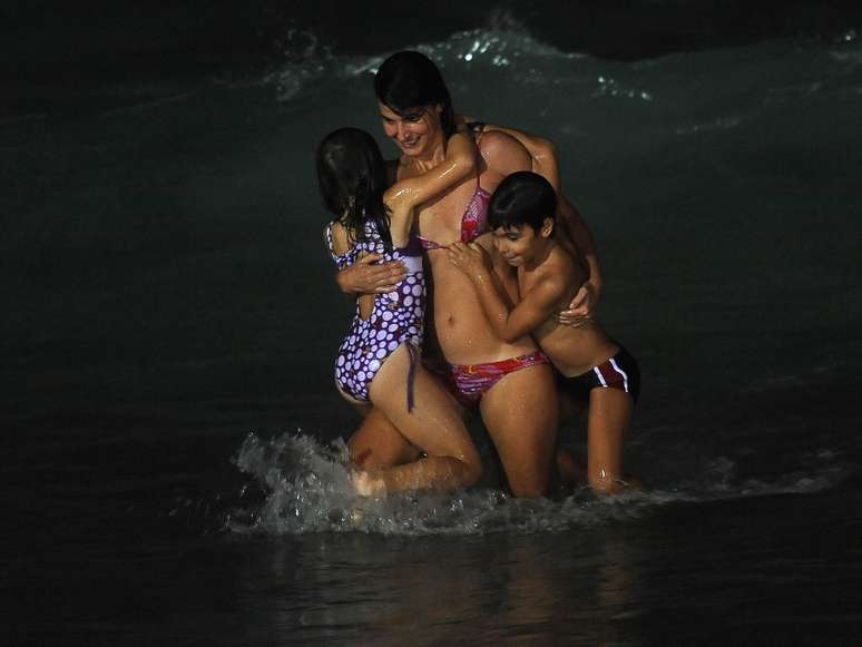 21 de fevereiro - Família aproveita banho noturno no Arpoador, Rio de Janeiro