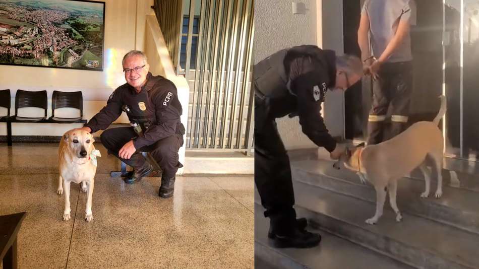Delegado cumprimenta cão comunitário enquanto conduzia preso e reação viraliza