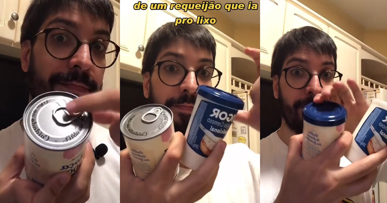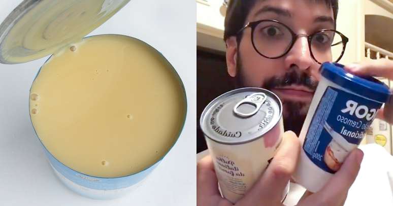 "Mano lava o copo de requeijão, esses copos são muito úteis para congelar coisas por exemplo. E despeje o leite condensado. Não é recomendado guardar na lata.", complementa Victor Passerini em nosso Instagram.