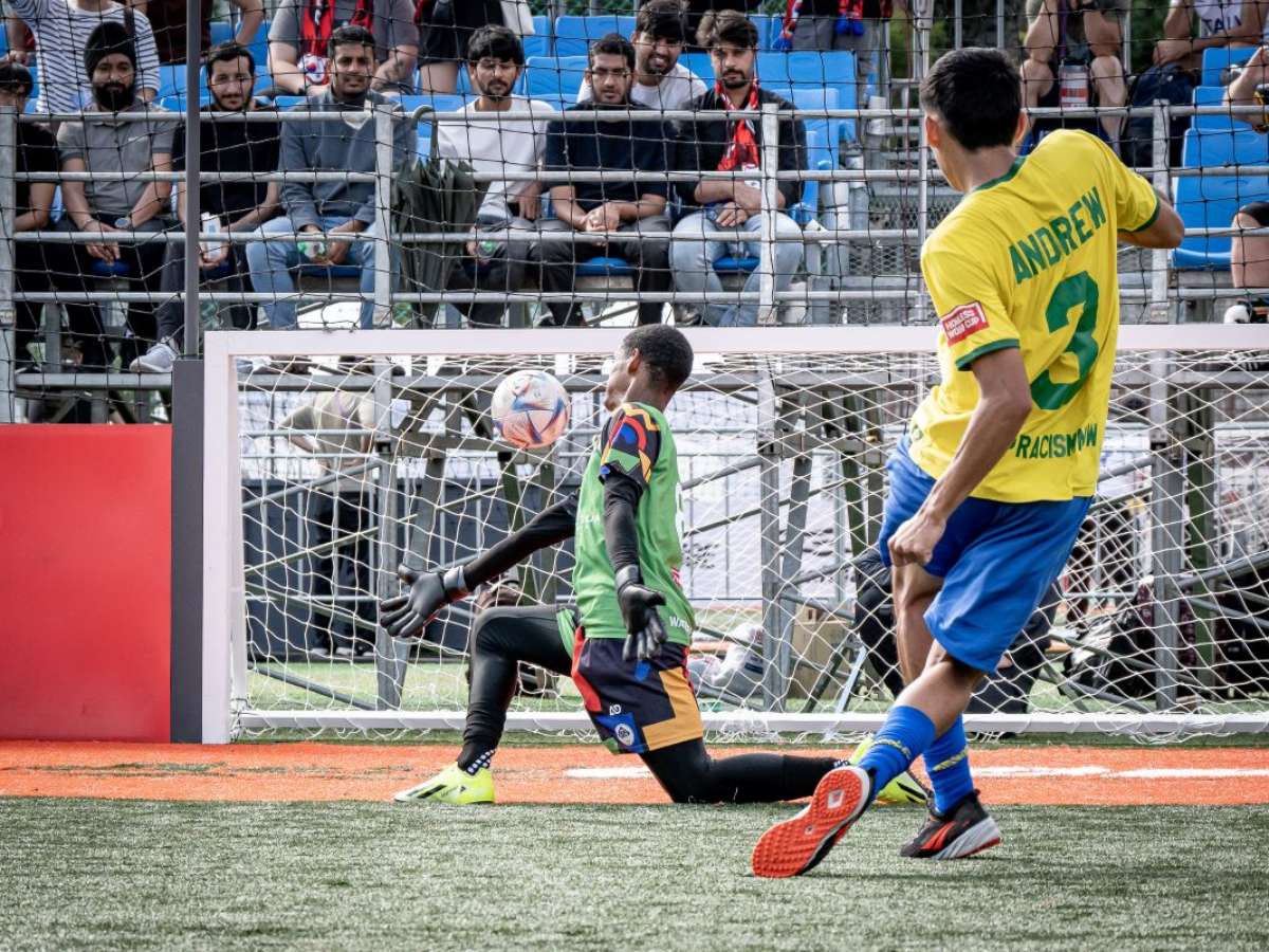 Jogam três na linha e um no gol. A partida tem dois tempos de sete minutos e o intervalo é curtíssimo, um minuto. Os times, mistos, não podem ser repetidos nas edições anuais da Copa, que começou em 2003 e se apresenta como o maior evento de futebol social do mundo.