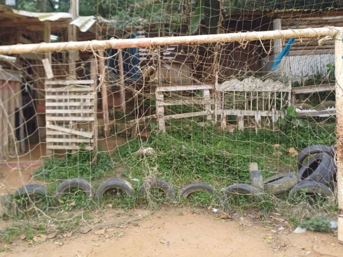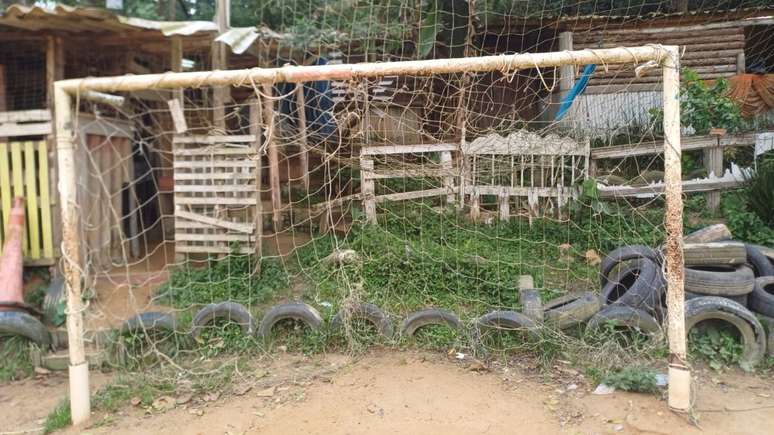 O gol precisa estar em pé no dia 26 de outubro, quando será realizada a festa do Dia das Crianças, que foi adiada. Se as traves novas não chegarem, o conserto está feito na velha. “Se você olhar a madeira que usamos, é ainda mais resistente, é peroba. Enterramos bem no chão, depois encaixamos a trave por cima, dentro da madeira. Por fora, é cano de PVC”, explica Lelê.