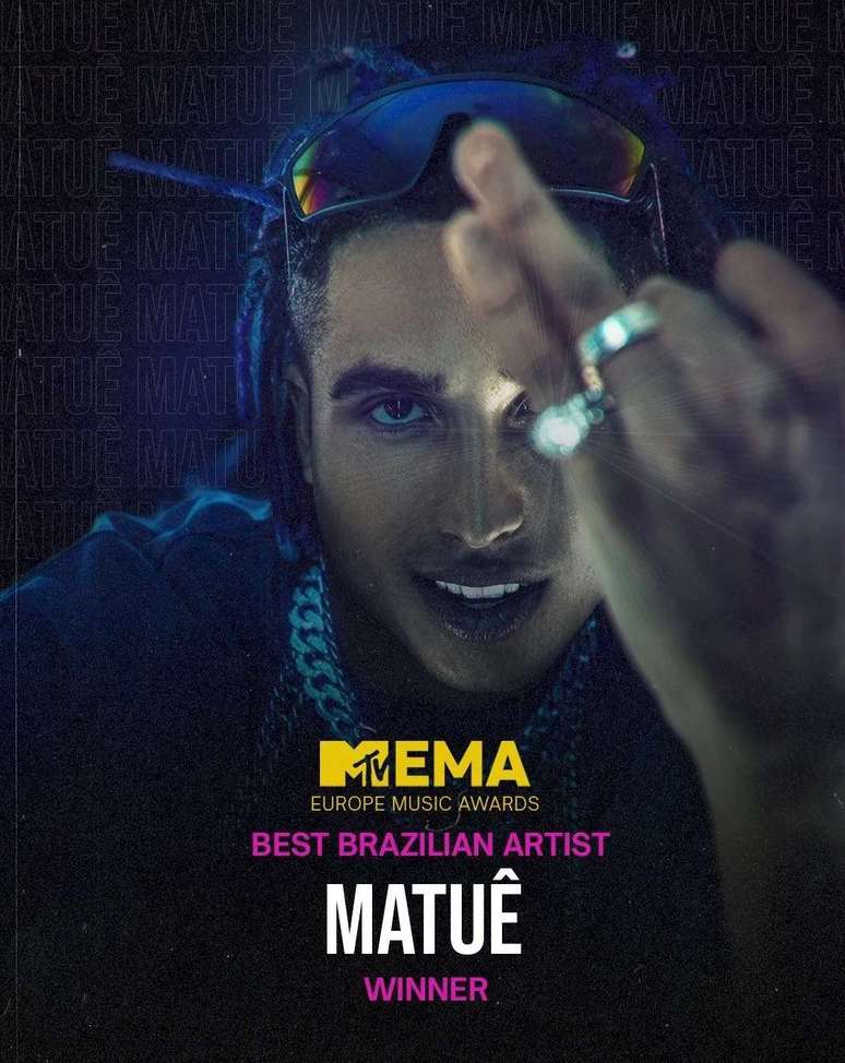 Um dos maiores rappers da atualidade, o cantor Matuê foi eleito o Melhor Artista Brasileiro pelo MTV EMA 2023. Ele, que foi o único rapper brasileiro a ser indicado neste ano, vem comprovando seu sucesso com feitos inéditos desde o início de sua carreira, agora sendo reconhecido internacionalmente pelo MTV Europe Music Awards.