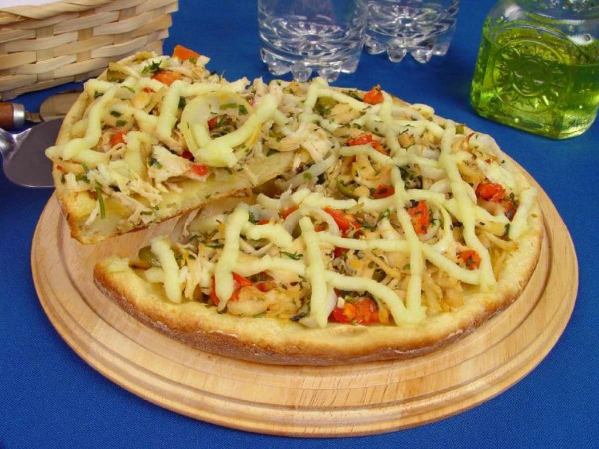 Em uma tigela, misture os ingredientes da massa. Com ela, forre o fundo de uma fôrma redonda de fundo removível untada, leve ao forno médio, preaquecido, por 10 minutos e reserve. Em uma tigela, misture os ingredientes do recheio, exceto o Catupiry®. Coloque sobre a massa na fôrma e cubra com o Catupiry®. Leve ao forno, preaquecido, por 10 minutos ou até assar e dourar levemente. Retire do forno, desenforme e sirva.