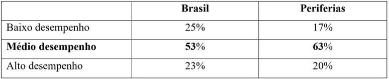 “Sai desse imaginário negativo, de fracasso da periferia, que está muito equivocado”, diz Ana Lúcia Lima, pesquisadora e coordenadora do Inaf. A pesquisa mostrou também que os jovens periféricos, entre 15 e 29 anos, são os que mais atingiram o nível médio no teste digital, com 55% - no nível alto, empatam com moradores de capitais, com 40%.